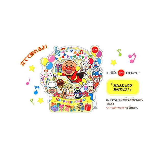 【仕様】定形外、立てて飾れます、曲名:バースデーソング、(C)やなせたかし/フレーベル館・TMS・NTV、アンパンマンのセリフ入りダイカットアンパンマン
