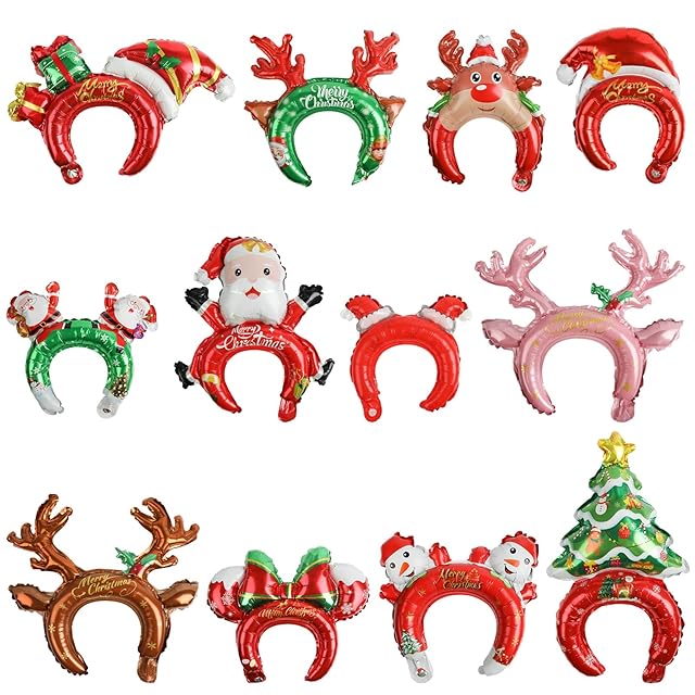 CINECE クリスマスカチューシャ 髪 フープ バルーンカチューシャ 風船 Xmas 装飾 アルミホイルバルーン サンタクロース ヘラジカ 12pcs