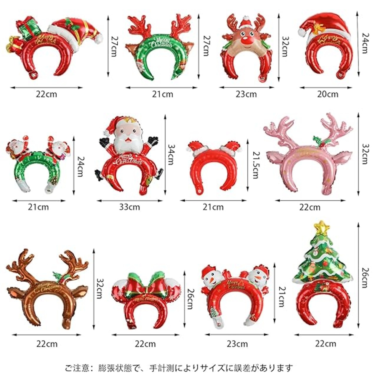 商品名:CINECE クリスマスカチューシャ 髪 フープ バルーンカチューシャ 風船 Xmas 装飾 アルミホイルバルーン サンタクロース ヘラジカ 12pcs