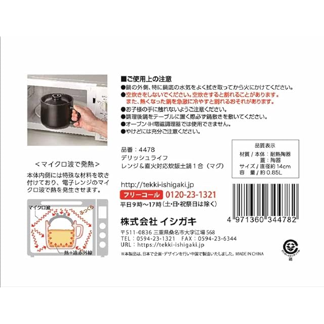 商品名:イシガキ DLレンジ&直火対応 炊飯土鍋 1合 マグタイプ 4478