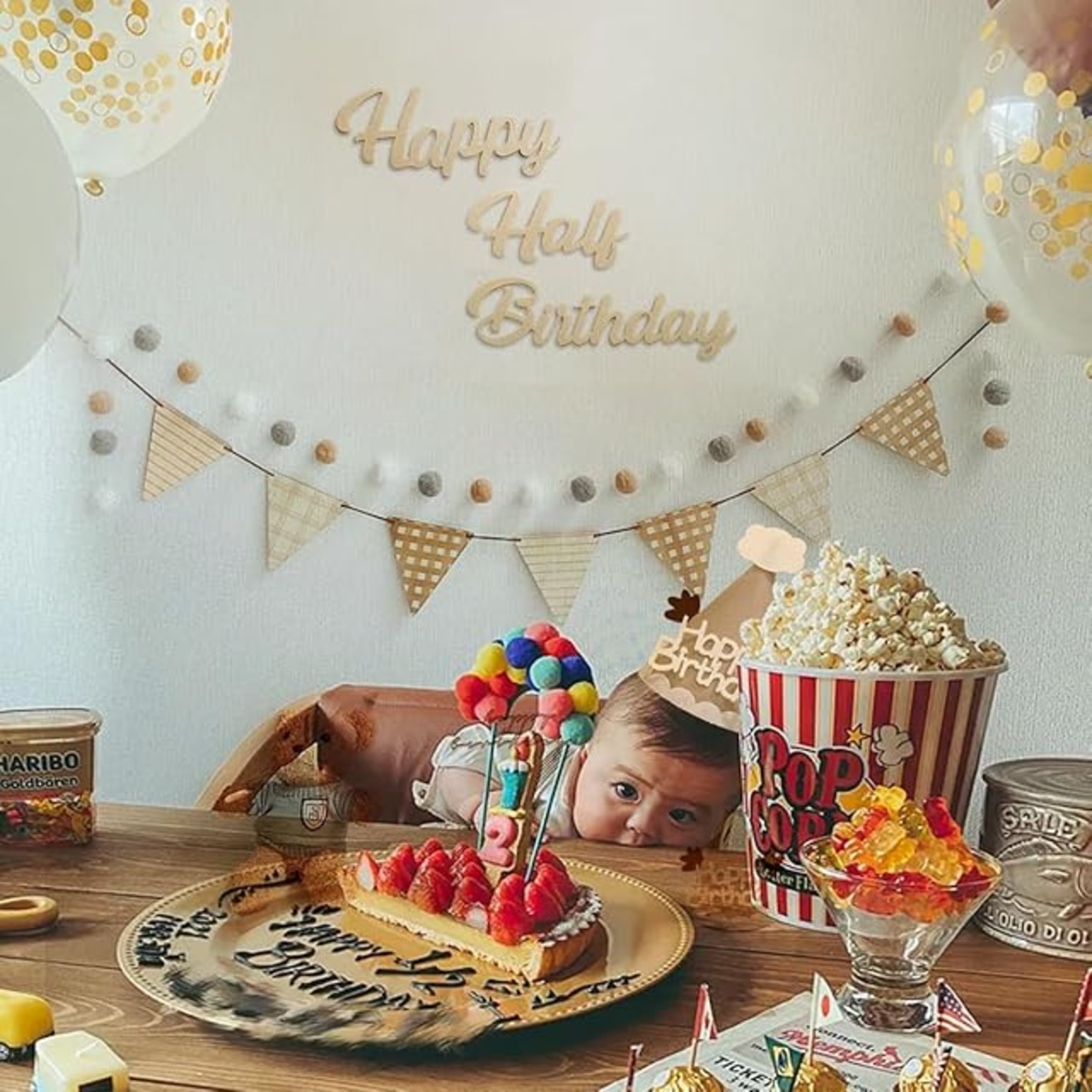 【簡単カワイイ❗】お子様や大切な方のおハーフバースデーを素敵に彩るデコレーションセット。流行のスプリプトスタイルを取り入れ、カワイイくてスタイリッシュなデコレーションをこれ一つで簡単に作ることができます。フェルト生地 誕生日パーティー装飾品は、男の子と女の子のハーフバースデーの誕生日パーティーを華やかに演出します。