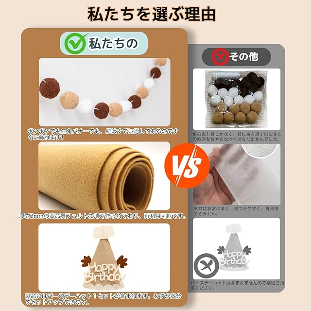 【充実のセット内容❗】ハーフバースデー happy birthdayフェルト生地バナーx1、フェルト生地 ケーキトッパーx1、150cm フェルト生地フラッグガーランドx1、200cm フグボールガーランド(事前に張られた)x1。素材は厚さ2mmのフェルト生地、繰り返し使用できます。