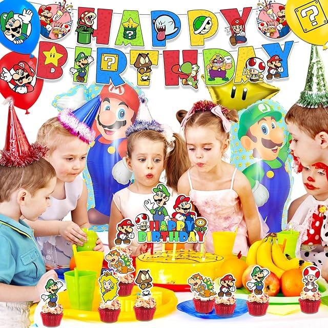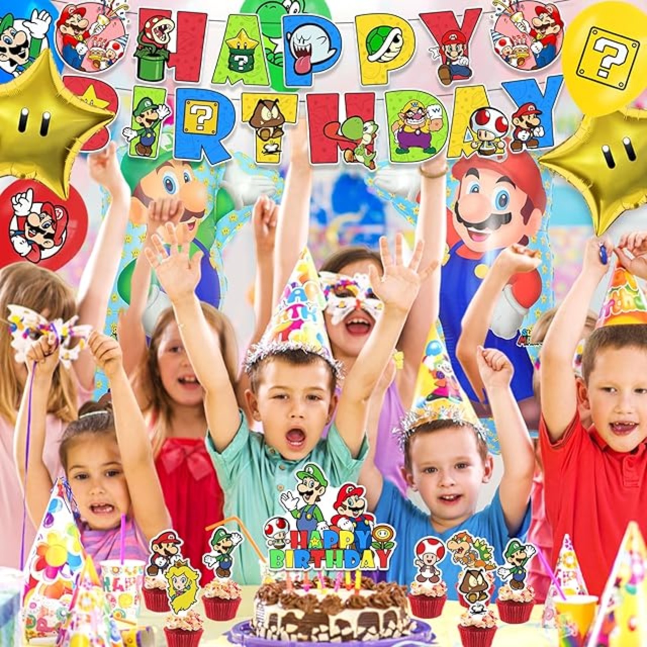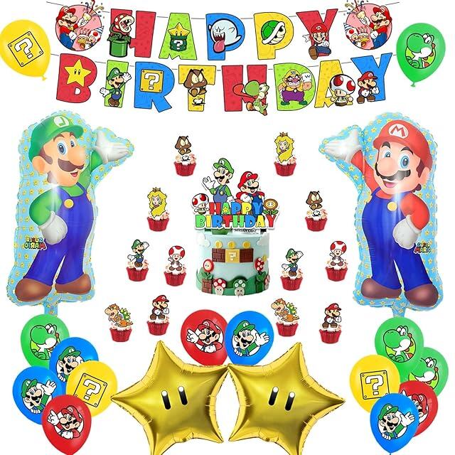Shiartexマリオ誕生日飾り アルミバルーン 風船バルーン HAPPYBIRTHDAYガーランド 誕生日飾り付け キャラクターケーキトッパー 子供誕生日デコレーション