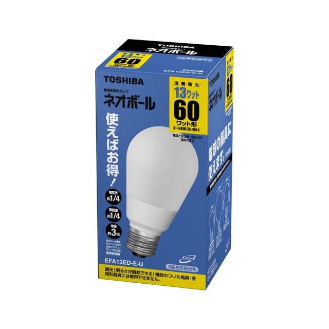 商品名:東芝 ネオボール 電球形蛍光ランプ 電球60ワットタイプ 昼光色 EFA13ED-E-U