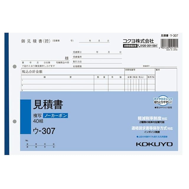 商品名:コクヨ 見積書 複写簿 ノーカーボン B5 ヨコ 12行 40組 ウ-307