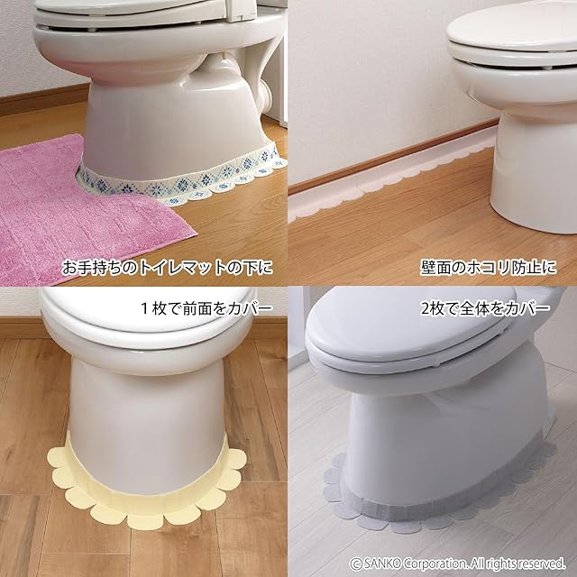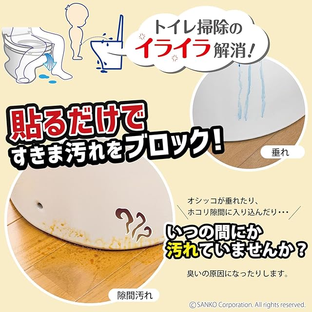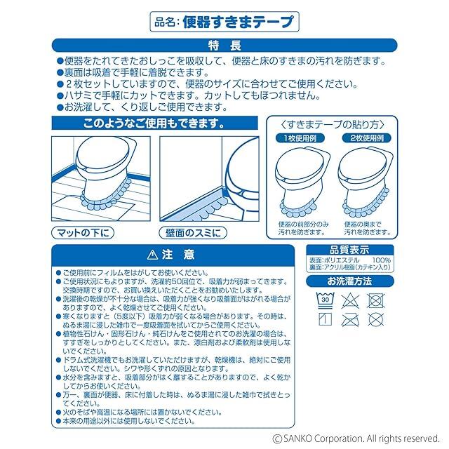 商品名:サンコー トイレ 便器すきまテープ ずれない 貼るだけ 汚れ防止 【日本製 消臭 洗える】 おくだけ吸着 ベージュ 2枚 8×長さ58cm H-71