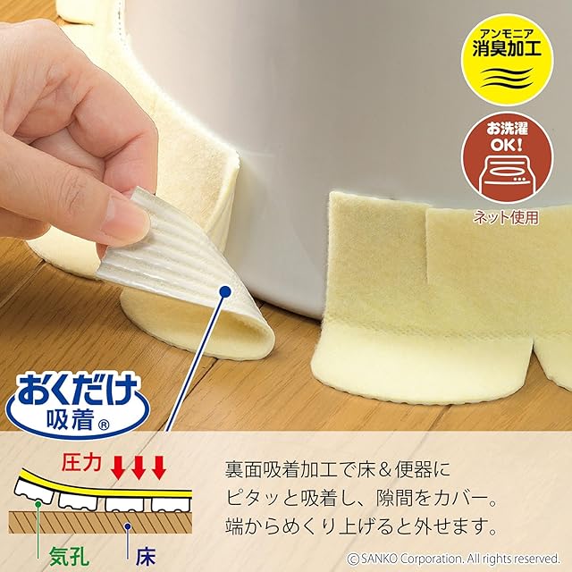 サンコー トイレ 便器すきまテープ ずれない 貼るだけ 汚れ防止 【日本製 消臭 洗える】 おくだけ吸着 ベージュ 2枚 8×長さ58cm H-71
