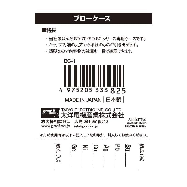 太洋電機産業(goot) はんだ用ブロ-ケース 【SD-70/SD-80シリーズ専用】【残量も一目で確認】【スムーズな取り出し】 BC-1 日本製