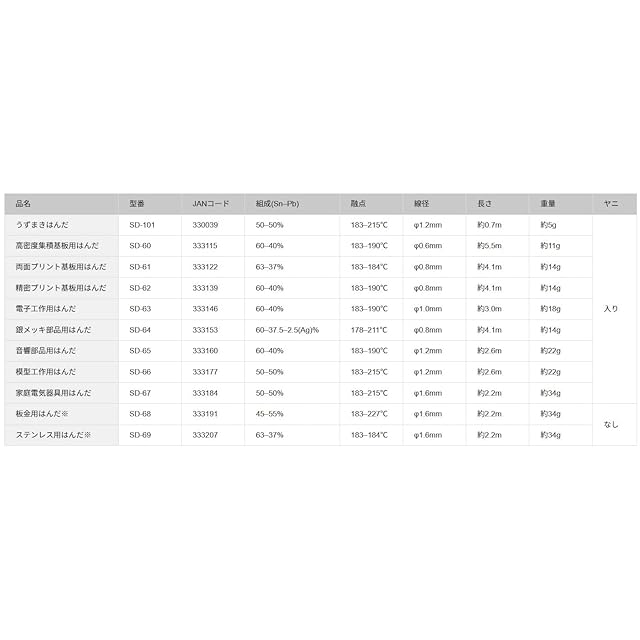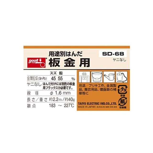 商品名:太洋電機産業(goot) 板金用 鉛入りはんだ φ1.6㎜ スズ45%/鉛55% ヤニ無し SD-68