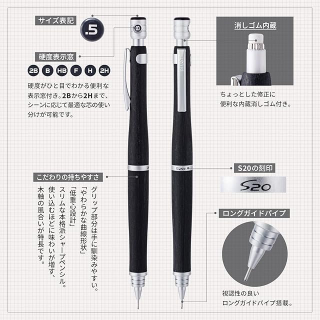 Pilot パイロット シャープペンシル S20 0.5mm ブラック (HPS-2SK-B5)