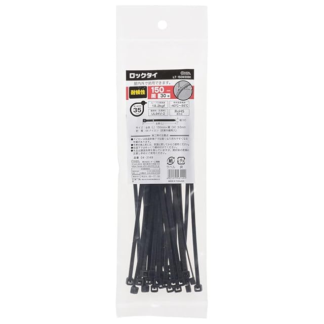 商品名:オーム(OHM) ロックタイ 耐候性 150mm 30本入 黒|LT-150W30BK 04-3149