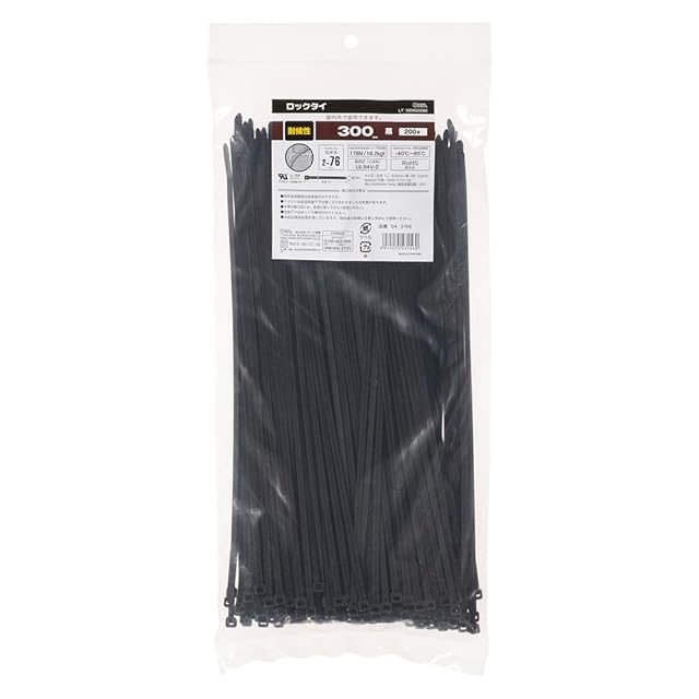 ■ 難燃性(主原料):UL94V-2 ■ RoHS適合品 ■ サイズ:全長300mm×幅3.6mm ■ 200本入り ■ 材質:PA66/ナイロン66 ■ 最低設置温度:-20℃