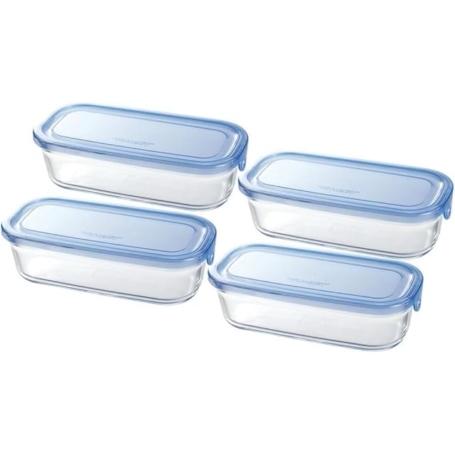iwaki(イワキ) 耐熱ガラス 保存容器 バターケース アクアブルー 長方形 M 500ml ×4個セット パック&レンジ KBC3246-BLN