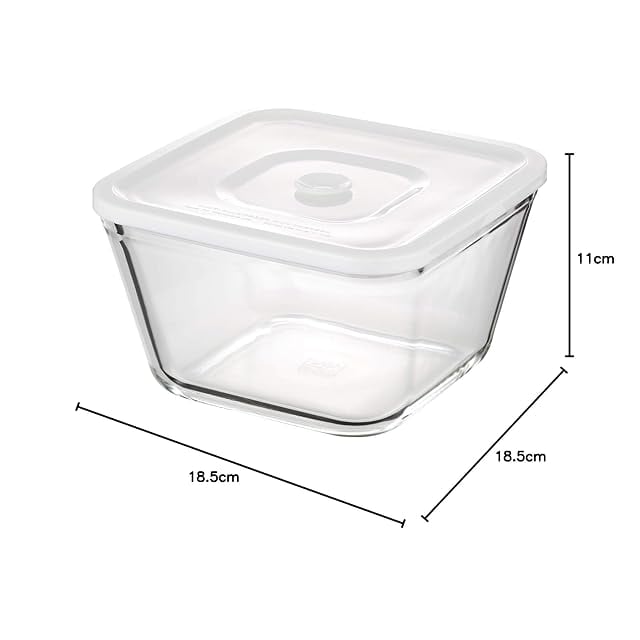 iwaki(イワキ) 耐熱ガラス 密閉容器 ホワイト 深型 LL 幅19.0×奥行19.0×高さ11.0cm 1.5L C3248HHMPW