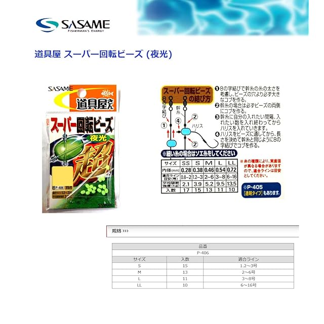 商品名:ささめ針(SASAME) P-406 道具屋 スーパー回転ビーズ 夜光 S