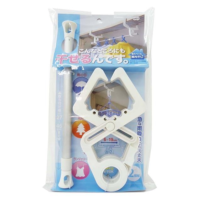 商品名:オーエ 洗濯 物干し ハンガー ホワイト 約縦24×横14.2×奥行1.7cm クロスフック ポール付 補助具 部屋干し 2個入