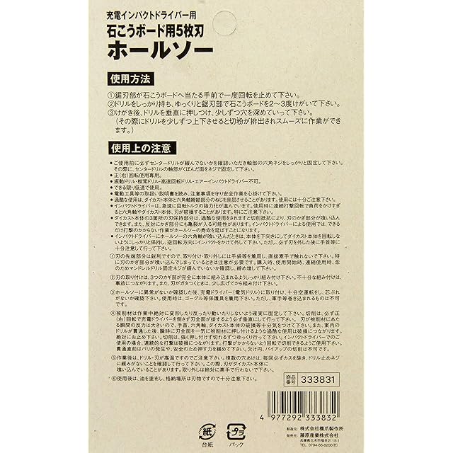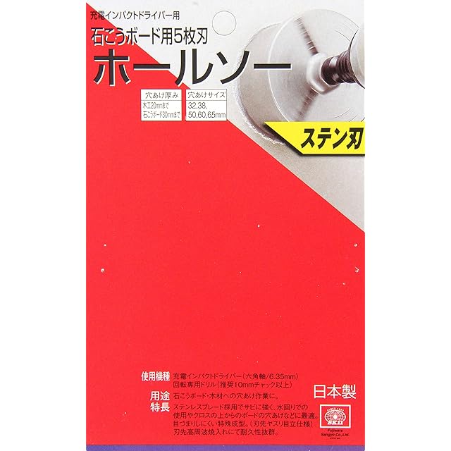 用途:石膏ボード・木材の穴あけ作業(配管通し穴・混合栓等取り付け穴・照明取り付け穴など)