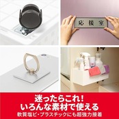 【様々な素材にピタッと接着、超強力両面テープ!】表面のツルツルした木・金属・塩ビ・プラスチックなどの接着に役立つ平滑面用両面テープ。屋内外どちらにも使えます。収納棚やタオル掛けの設置、屋外の装飾品の固定などにも。