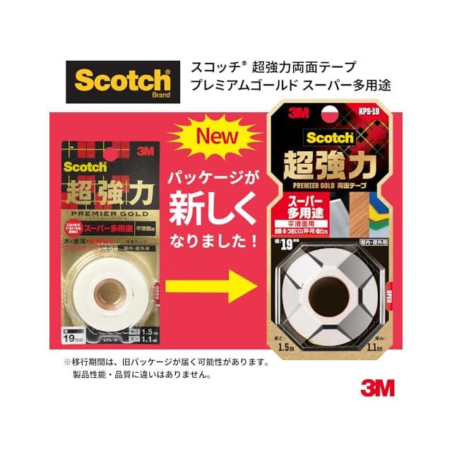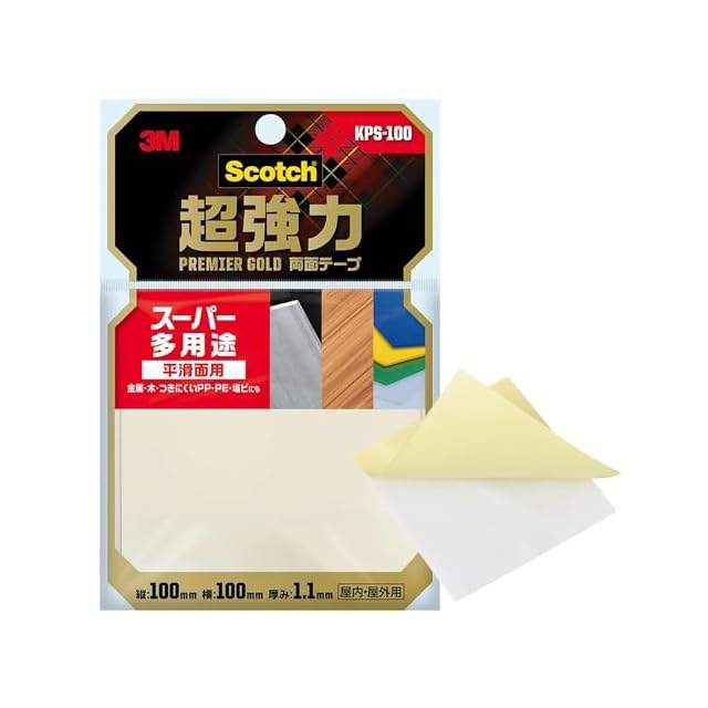 商品名:3M スコッチ 超強力両面テープ プレミアゴールド スーパー多用途 100×100mm 1巻 KPS-100