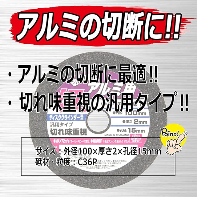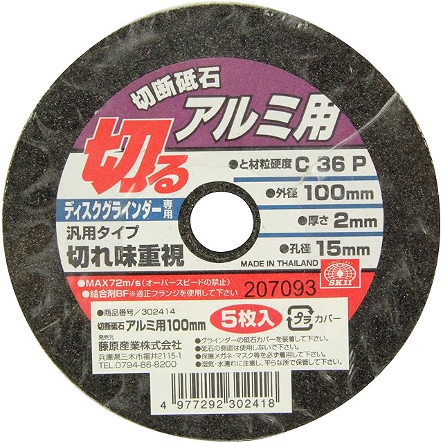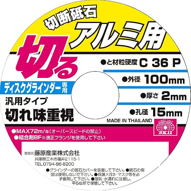 商品名:SK11(エスケー11) ディスクグラインダー用 切断砥石 アルミ用 5枚入 C36P 100×2.0×15mm