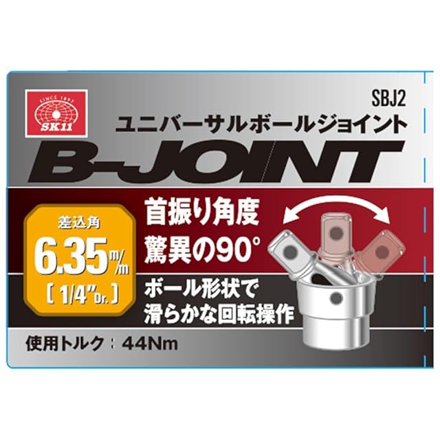 SK11(エスケー11) ユニバーサルボールジョイント 差込角6.35mm 使用トルク44Nm 首振り角度90度 SBJ2