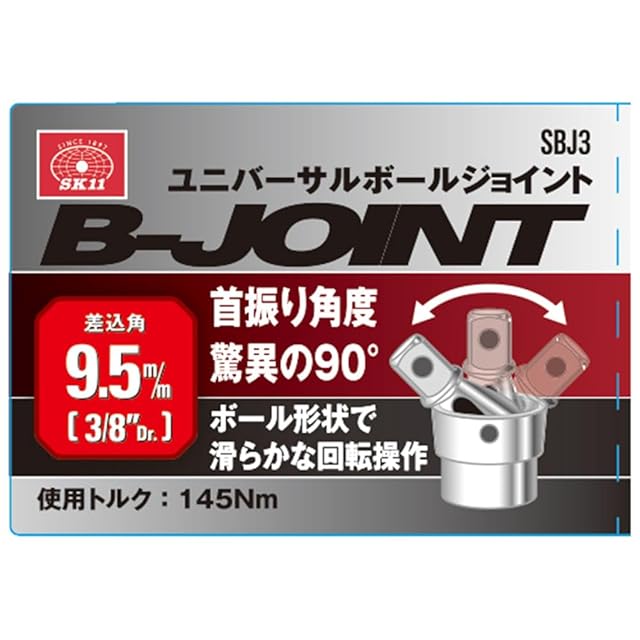 SK11(エスケー11) ユニバーサルボールジョイント 差込角9.5mm 使用トルク145Nm 首振り角度90度 SBJ3