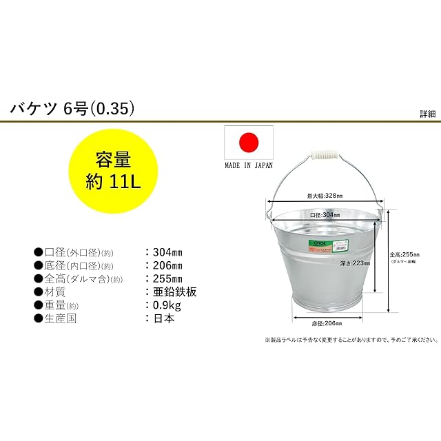 商品名:尾上製作所(ONOE) バケツ6号0.35 [11リットル 鉄板厚め(0.35mm) ガーデニング 園芸 キャンプ アウトドア 防災グッズ 火に強いトタン製 口径30.4 x 底径 20.6 x 深さ22.3cm 日本製]
