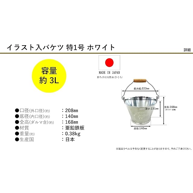 尾上製作所(ONOE) イラスト入バケツ特1号ホワイト [3リットル ガーデニング用品 園芸 キャンプ アウトドア 防災グッズ 亜鉛鉄板 口径20.8 x 底径14.0 x 深さ13.1cm 日本製]