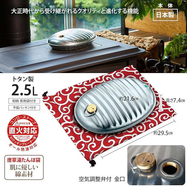 マルカ 湯たんぽ 和柄 エンジ 約幅32.7×奥行23.8×高さ8.5cm 湯たんぽA(エース) 2.5L 袋付 023453