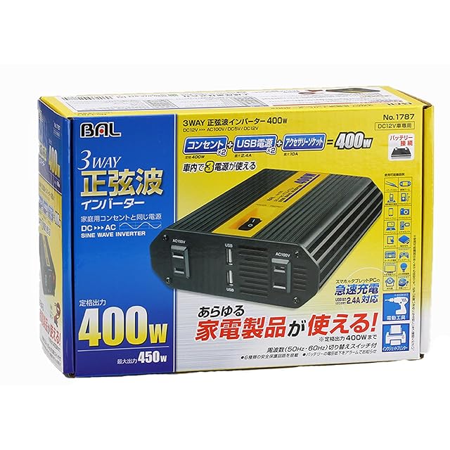 商品名:BAL(大橋産業) 3WAY正弦波インバーター 400W No1787