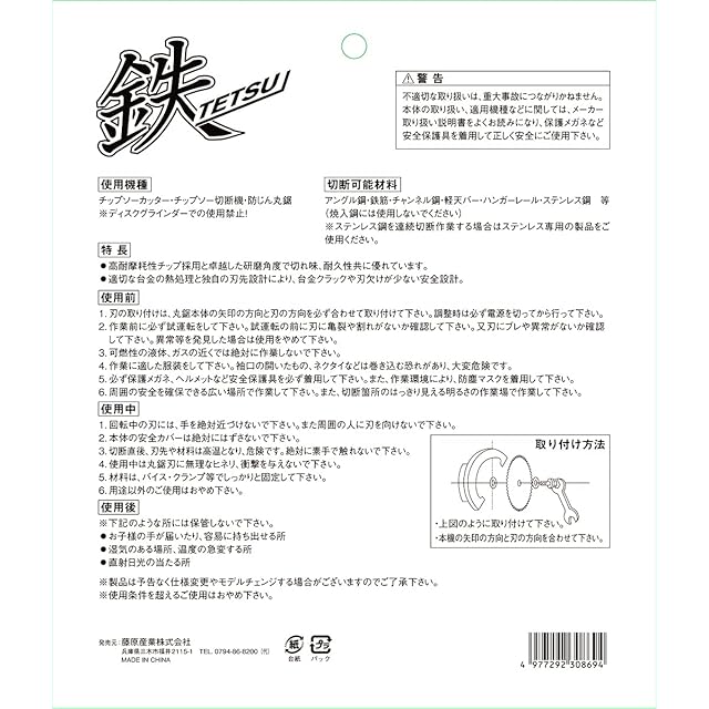 商品名:SK11(エスケー11) 鉄TETSU 鉄切チップソー 180×1.8×36P