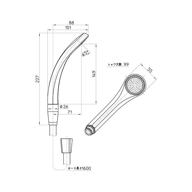 長さ1.6mの標準タイプのシャワーホースです。シャワーヘッド取付部は回転式の為ホースがねじれません。