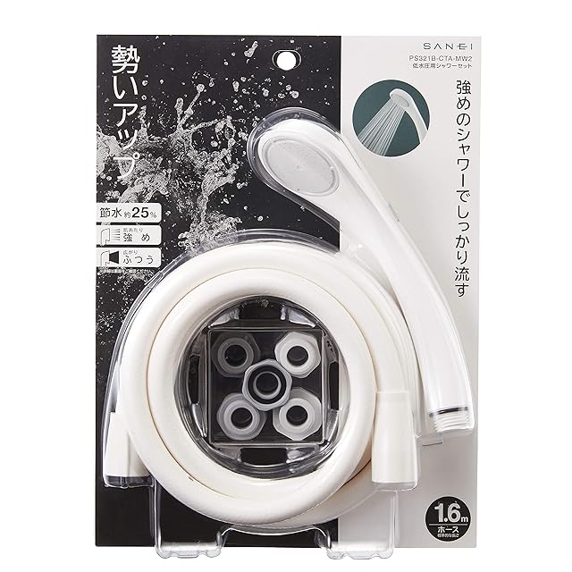 SANEI(サンエイ) 低水圧用シャワーセット 節水率25% 勢いアップ ホワイト 長さ1.6m アダプター5個付 PS321B-CTA-MW2