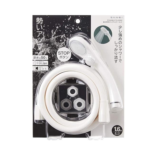 SANEI(サンエイ) シャワーヘッドとホースのセット 節水 低水圧用ストップ機能付シャワーセット PS323B‐CTA‐MW2