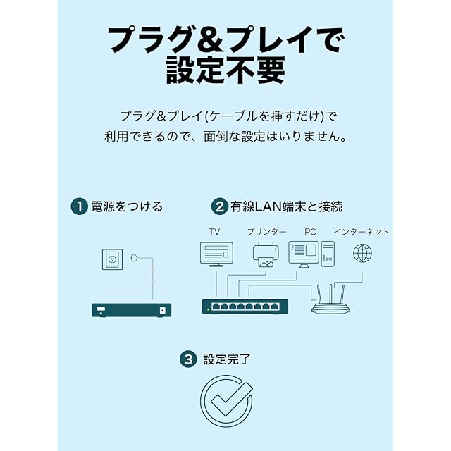 商品名:【.co.jp限定】TP-Link 8ポート スイッチングハブ 10/100/1000Mbps ギガビット 金属筺体 設定不要 TL-SG608