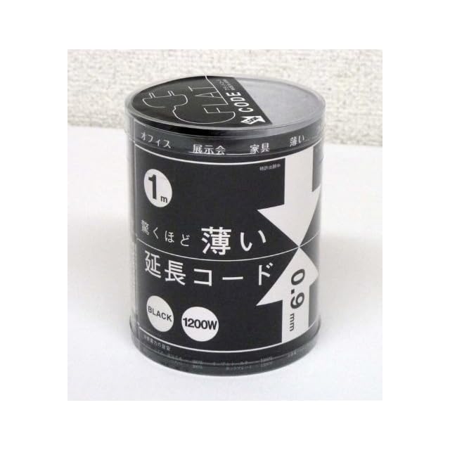 商品名:驚くほど薄い延長コード フラットコード 黒 1m