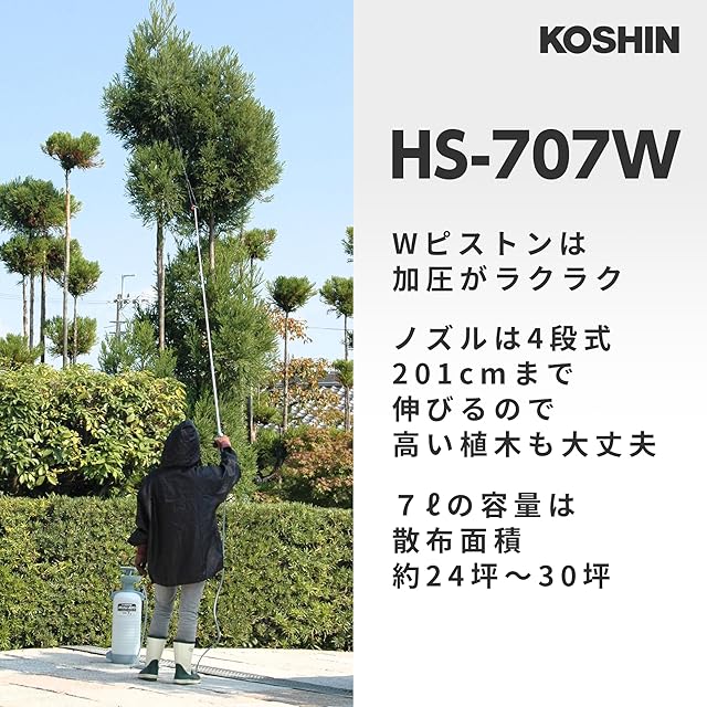 商品名:工進(KOSHIN) 蓄圧式 噴霧器 タンク 7L ミスターオート HS-707W 伸縮 4段 ノズル 噴口 2個 Wピストン 防除 消毒 散布