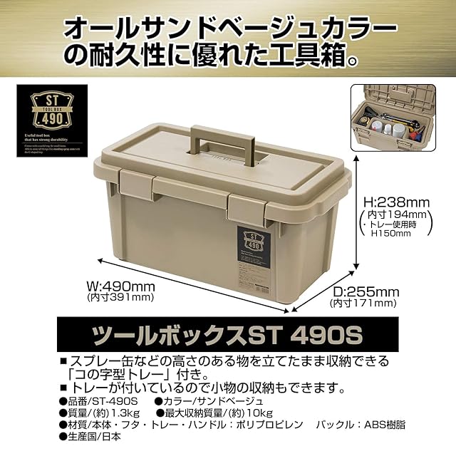 JEJアステージ 収納ボックス 日本製 アウトドア収納 キャンプ [Sシリーズ ツールボックス ST490S] サンドベージュ 幅49×奥行25.5×高さ24cm