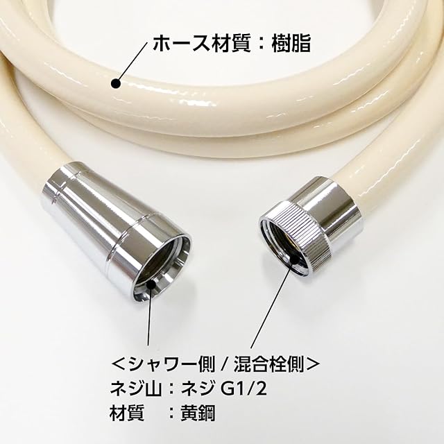 商品名:SANEI(サンエイ) シャワーホース アイボリー ほとんどのメーカー対応 水栓側アダプター付 2m G1/2 PS30-86TXA2-I日本製