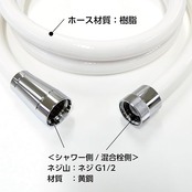 商品名:SANEI(サンエイ) シャワーホース マットホワイト ほとんどのメーカー対応 水栓側・シャワー側アダプター付 1.8m G1/2 PS30-86TXB18-MW2日本製