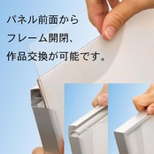 フレームサイズ:フレーム幅=8mm/内寸法=364X515mm,B3サイズの作品が収納できます/外形=368X519mm,厚さ20mm