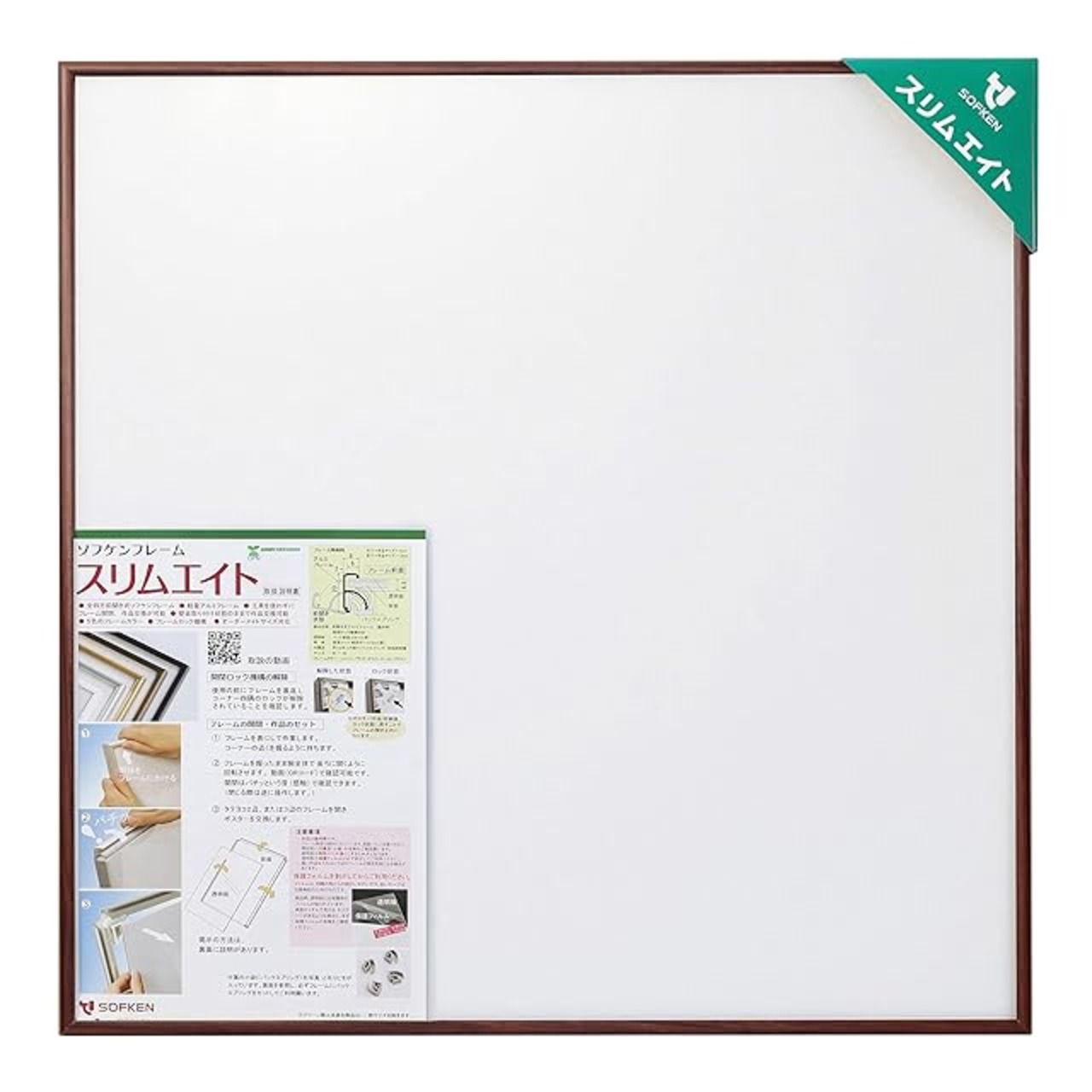 ソフケン アルミ額縁 スリムエイト 500X500 木目柄ブラックウォールナット 【手ぬぐい額、ハンカチ額、正方形額、軽量で作品セットが簡単なポスターフレーム】