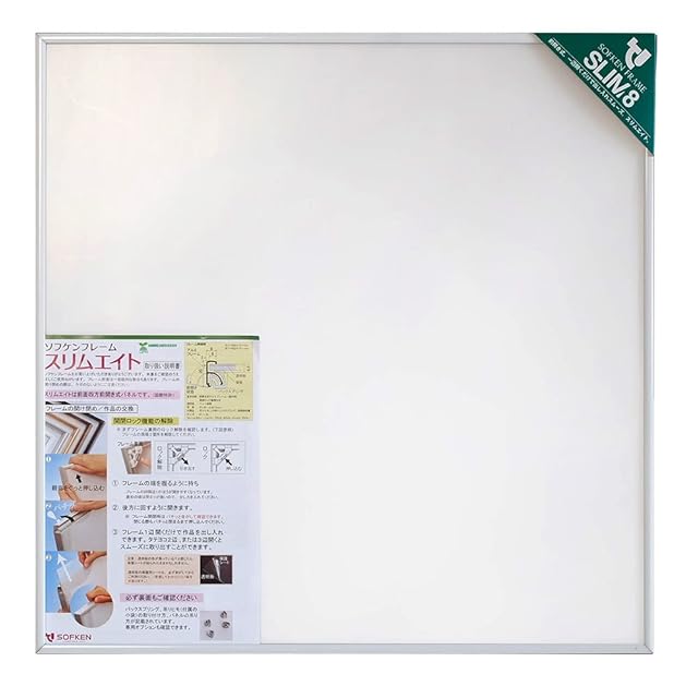 ソフケン アルミ額縁 スリムエイト 500X500 ホワイト 【手ぬぐい額、ハンカチ額、正方形額、軽量で作品セットが簡単なポスターフレーム】