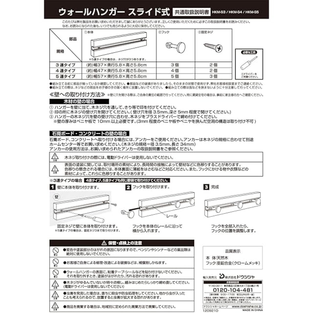 [ドウシシャ] 壁掛けフック ウォールハンガー スライド式 3連 ダークブラウン 幅37×奥行5.8×高さ5.8cm HKM-S3DBR