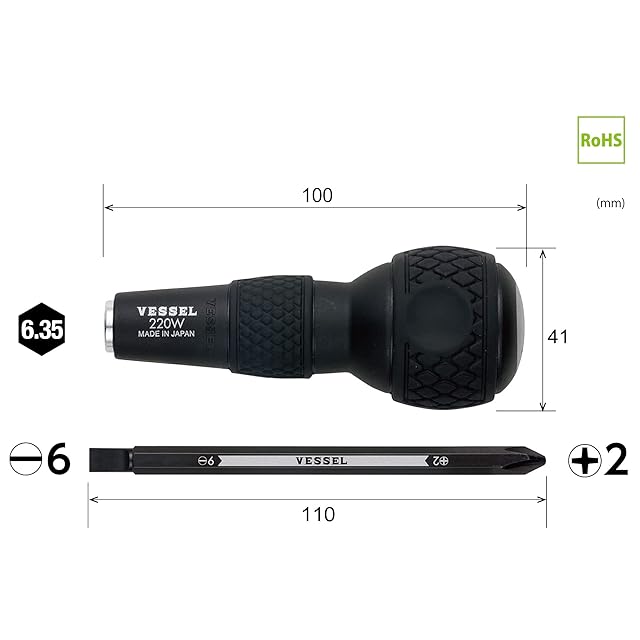 ベッセル(VESSEL) ボールグリップ 差替ドライバー (+2/-6 ビット付) 220W-62