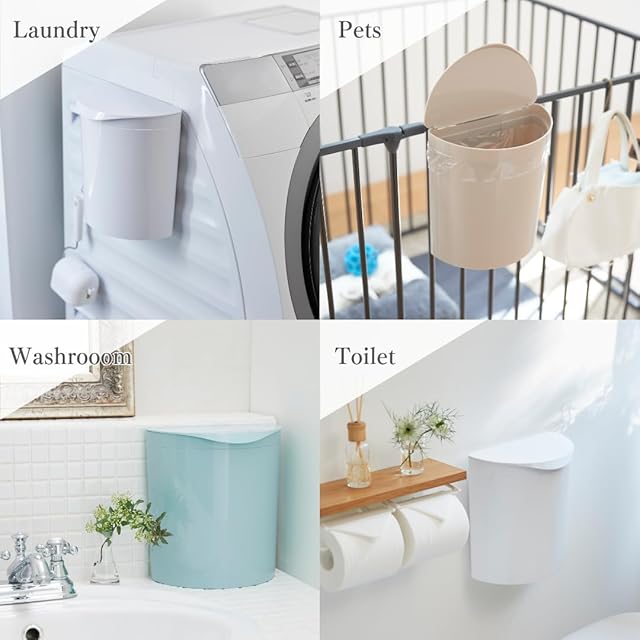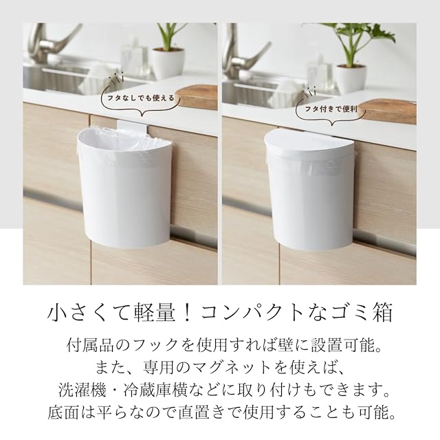 イセトウ(Isetou) ゴミ箱 メルナミニ ホワイト 4L 幅22.1×奥行13.2×高さ24.0cm 日本製 耐荷重1Kg フタ付き マグネット付 扉用フック付 壁掛け 小物収納箱 壁掛け 収納 キッチン 洗面台 トイレ 洗濯機 ペット 小屋 I-606