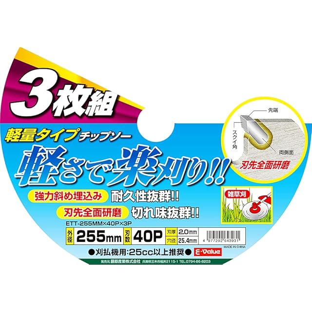 イーバリュー(E-Value) チップソー ETT-255mm×40P 軽量タイプ 奥行0.3×高さ25.5×幅25.5cm 3枚組