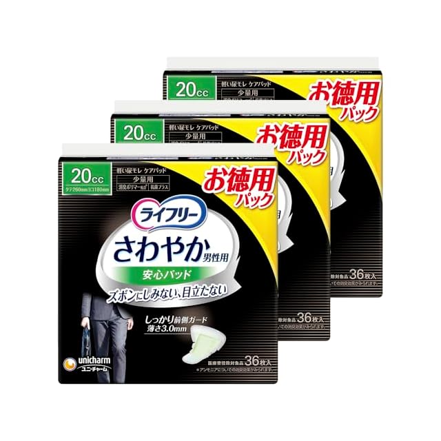 ライフリー 【まとめ買い】【尿もれパッド男性用 20㏄】 さわやか 男性用 安心パッド 少量用 108枚 (36枚×3パック) 26㎝ (数滴モレてしまう少量)
