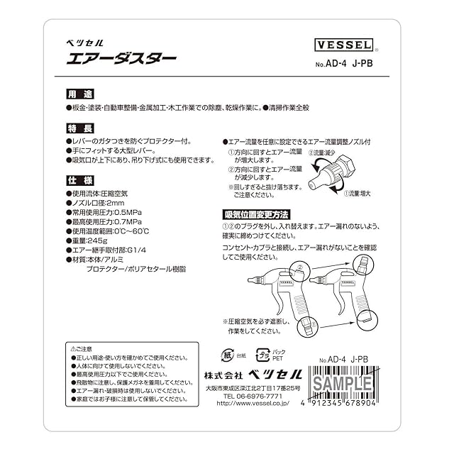 商品名:ベッセル(VESSEL) エアーダスター 流量調整ノズル AD-4 J