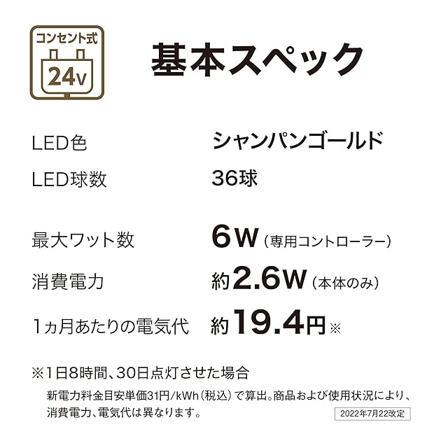 延長コード:約5m/LED:36球(シャンパンゴールド)